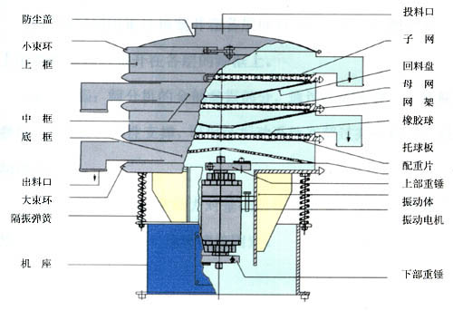 XZS系列旋振篩是在S49系列旋振篩的基礎(chǔ)上,吸收國內(nèi)外先進(jìn)技術(shù),并采用先進(jìn)的加工工藝而設(shè)計(jì)的高精度篩分過濾機(jī)械,它是以立式振動電機(jī)或?qū)S眉ふ衿鳛檎駝釉矗⑹秸駝与姍C(jī)(或激振器)上、下端裝有偏心重錘,可產(chǎn)生水平、垂直、傾斜的三次元運(yùn)動,通過調(diào)節(jié)上、下偏心重錘的相位角,改變物料在篩面上的運(yùn)動軌跡以達(dá)到篩分各種物料的目的。該產(chǎn)品適用于任何粉、粒、液的篩分和過濾的行業(yè)。廣泛用于化工、醫(yī)藥粉、液、涂料、顏料、化妝品、油脂、樹脂、陶瓷漿、粘土泥漿、生石灰、耐火材料粉末,冶金粉末、電磁粉末、研磨粉、果汁、飲料、食糖、食鹽、味精、調(diào)料、奶粉、淀粉、面粉、米粉、碳粉、石墨粉、錳粉、碳酸鋰、助溶劑、滅火劑以及環(huán)保行業(yè)的污水、廢水處理的工藝過程中的篩分、過濾。