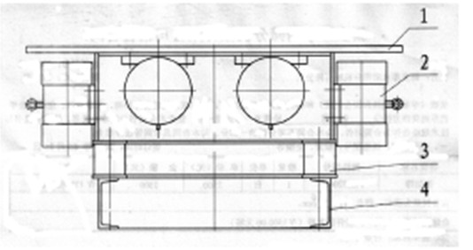 振動平臺(如圖1)由:1、振動平臺臺體 2、振動電機(jī) 3、減震彈簧 4、下座架組成。